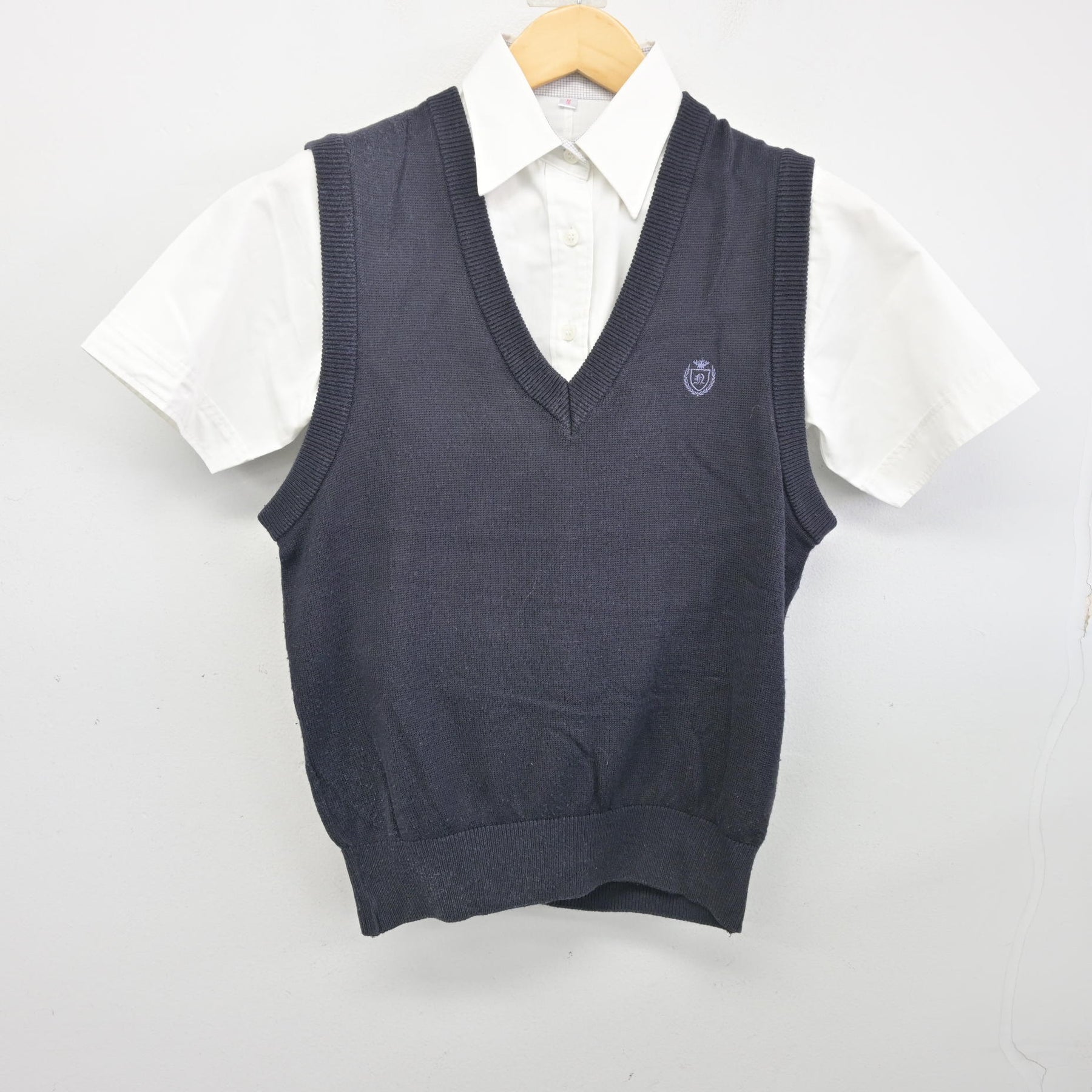 【中古】千葉県 日本大学習志野高等学校 女子制服 2点 (ニットベスト・シャツ) sf106726