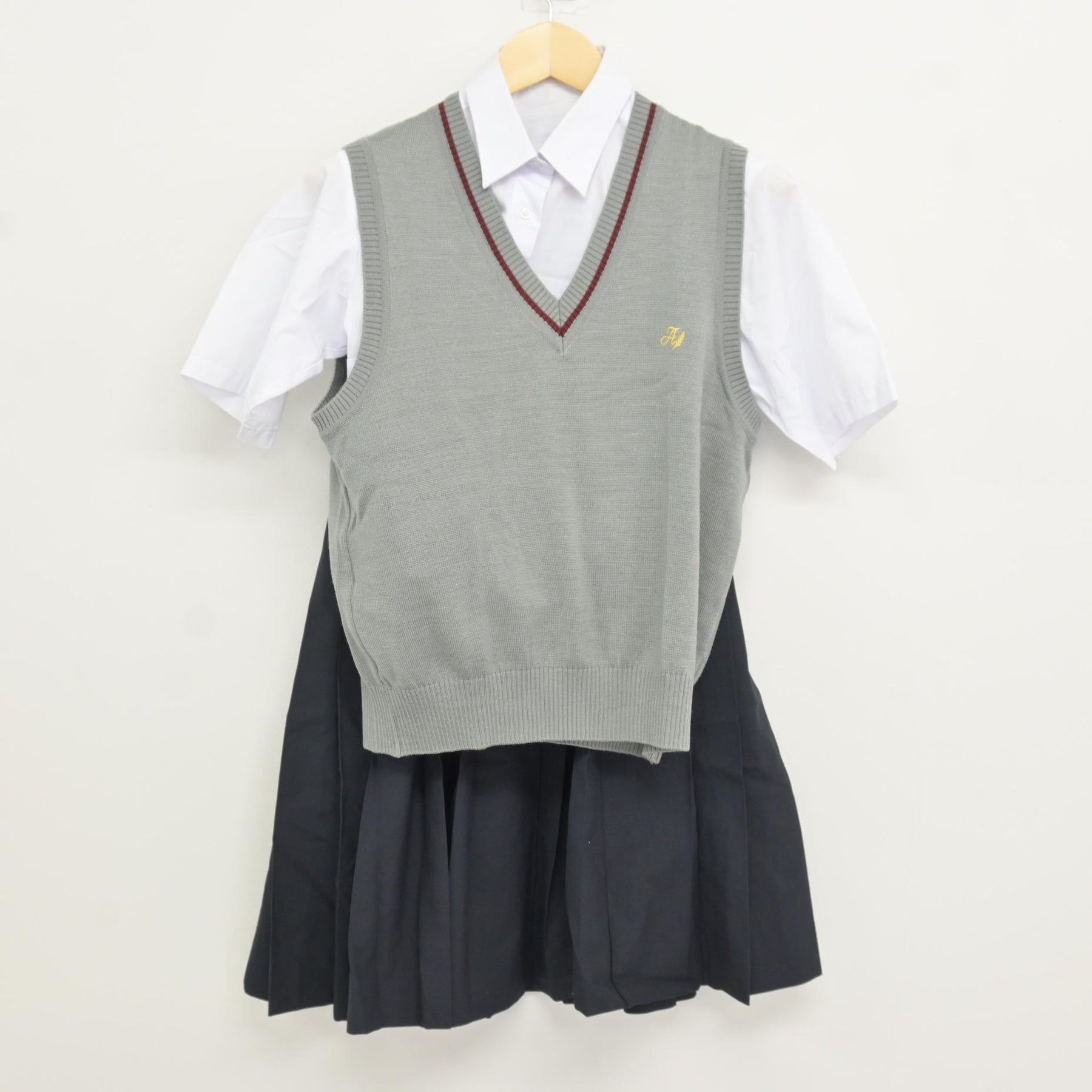【中古】神奈川県 東野中学校 女子制服 3点 (ニットベスト・シャツ・スカート) sf116108