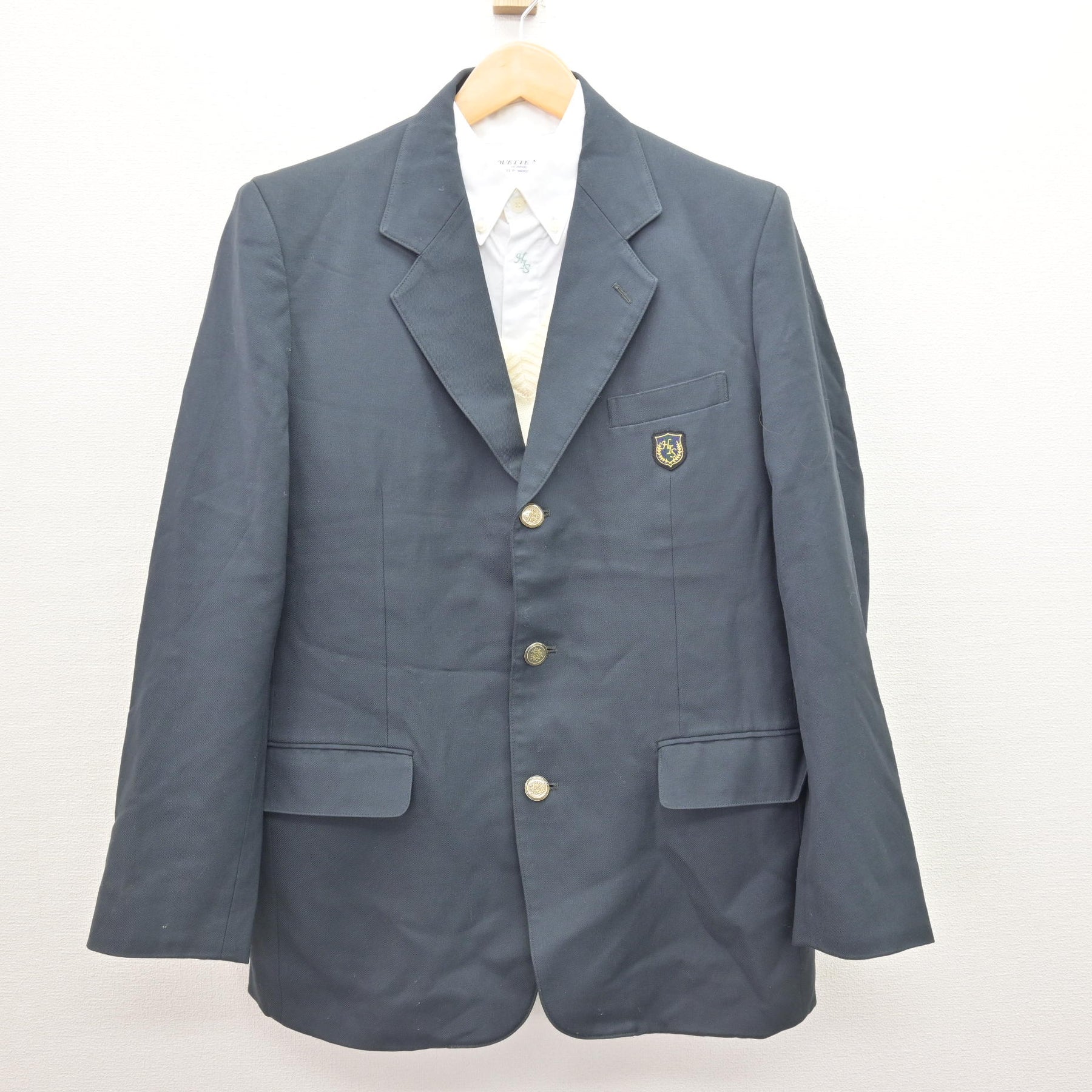 【中古】兵庫県 国際高等学校 男子制服 3点 (ブレザー・ニット・シャツ) sf124753