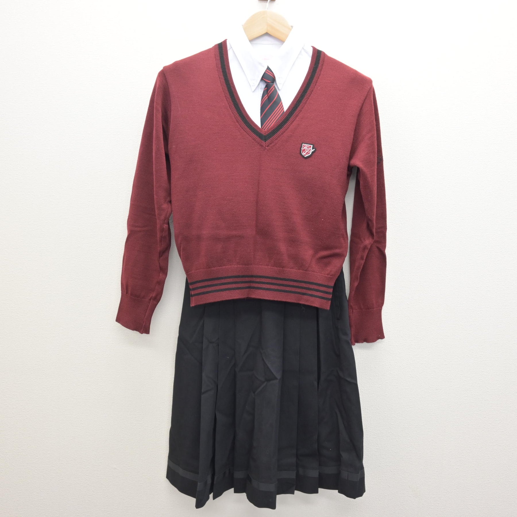 【中古】福岡県 九州国際大学付属高等学校 女子制服 5点 (ブレザー・ニット・シャツ・スカート) sf122239